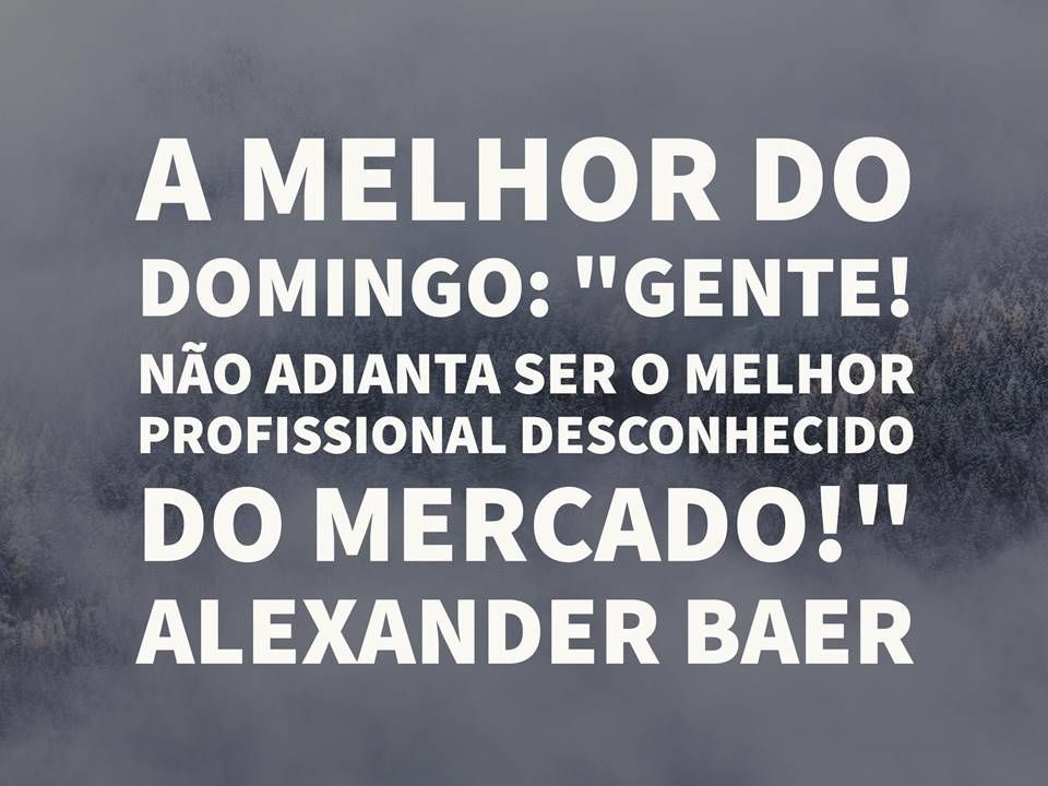 "A palestra (Marketing Pessoal 5.0. Aprenda a se Vender e conquiste seu espaço),com o sr. Alexander Baer foi um sucesso. Além de muito simpático e acessível, o palestrante conseguiu segurar os acadêmicos com sua fala inteligente e de compreensão fácil e extrovertida.
